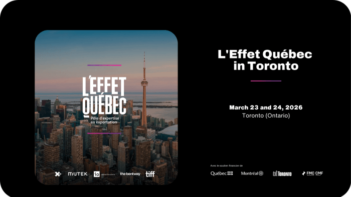 Toronto, le jeudi 19 mars 2026 — Toronto accueillera les 23 et 24 mars 2026 la première édition de L’Effet Québec in Toronto, une mission interprovinciale consacrée au développement de partenariats entre les secteurs des médias numériques interactifs, de l’immersif et des expériences numériques du Québec et de l’Ontario. Présenté au Bentway, l’événement réunira plus de 100 professionnel.le.s afin de favoriser la coproduction, l’accès à de nouveaux marchés et le développement de stratégies de collaboration et d’exportation internationale.