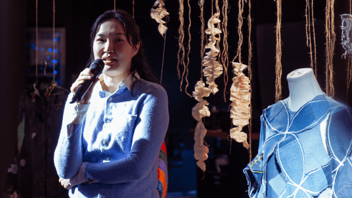 Cette année, c’est Mira Musank qui a été sélectionnée comme agente de changement pour la résidence PHI Immersif. Très impliquée dans le milieu de la mode circulaire à travers Fafafoom Studio, cette artiste et activiste milite pour le développement durable et lutte contre le gaspillage.